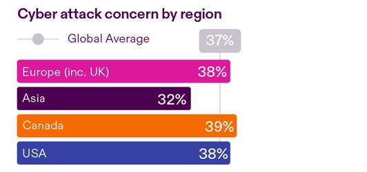 Cyber risk is now a common concern across all major markets, (see chart below).