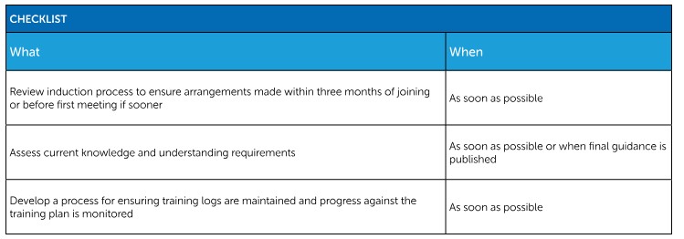 Pension committee members, the senior LGPS officer, other officers with delegated responsibilities and possibly the independent person (the draft guidance is slightly contradictory on this), will need to demonstrate knowledge and understanding appropriate to their respective roles. Inductions should be organised within three months of the appointment or the first meeting if sooner.