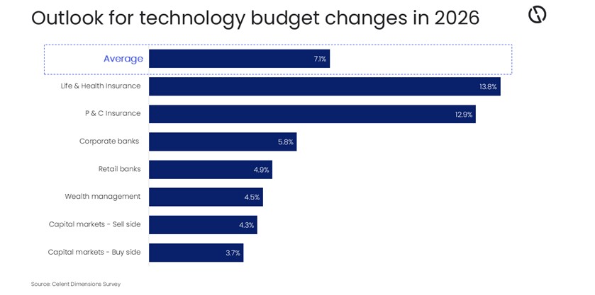 Celent’s research, based on its comprehensive IT Dimensions survey of more than 1,000 executives at financial institutions, reveals that IT budgets are expected to rise by an average of 7% in 2026 with significant variation across the financial services industry. As a result, institutions across the board are being forced to make tougher decisions about where technology investment will deliver the greatest value.