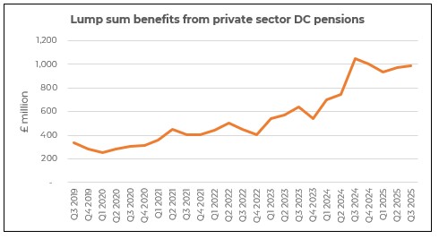There are also clear spikes evident in both quarters near the Autumn Budget 2024 with lump sum access reaching record levels of £1.0bn in both Q3 2024 and Q4 2024 around the Chancellor’s statement on 30 October 2024.