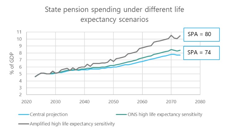 My own analysis suggests that, if life expectancy rises by more than expected, the State Pension Age could, in an extreme scenario, need to increase to 80.