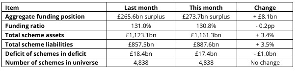 This update provides the latest estimated funding position, based on adjusting the scheme valuation data supplied to The Pensions Regulator as part of the schemes’ annual scheme returns, on a section 179 (s179) basis, for the defined benefit pension schemes potentially eligible for entry to the Pension Protection Fund (PPF). |