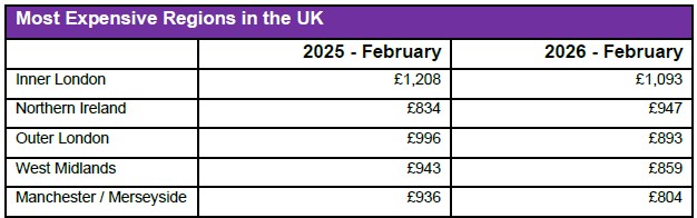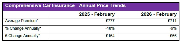 £630. West Central London, still the country’s most expensive postcode, saw an annual fall of 6% (£81), with average premiums now at £1,349 compared to £1,430 in February 2025.